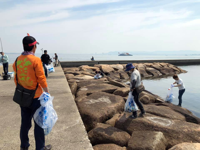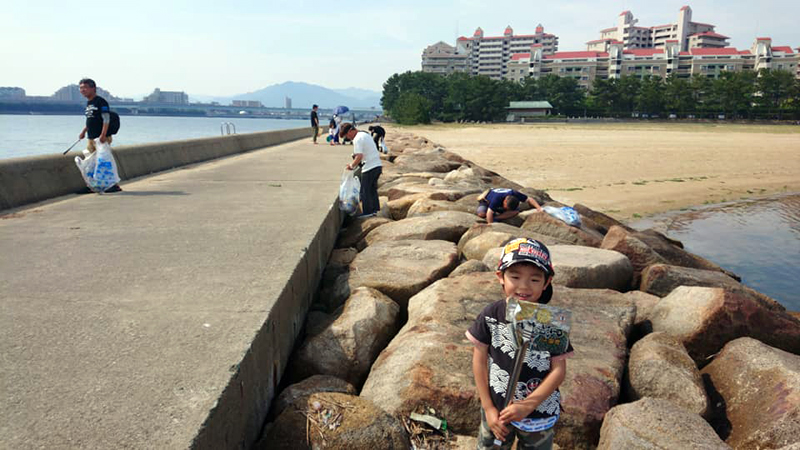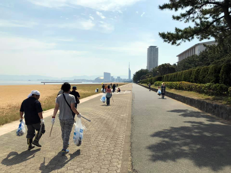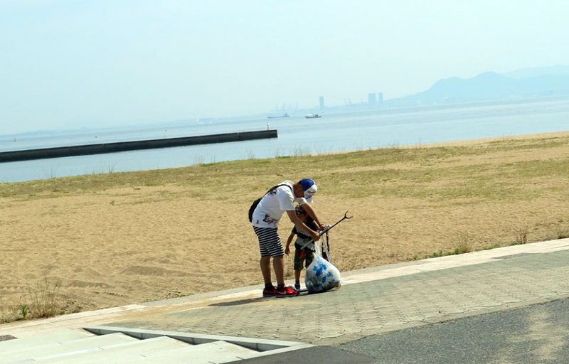 愛宕浜マリナタウにて行いました。5月とはいえ日差しはかなり厳しく参加者の皆さん汗をかきながらの活動だったと思います。