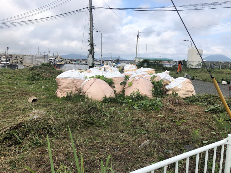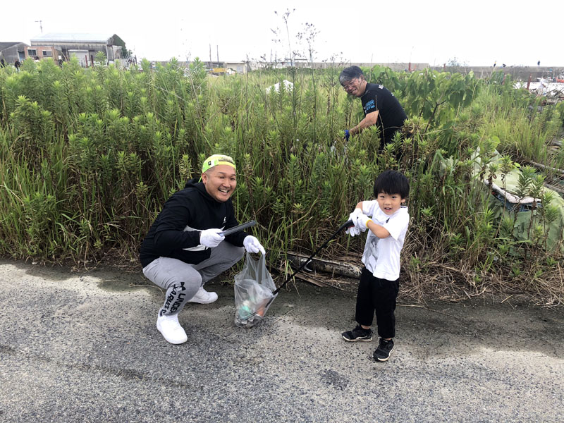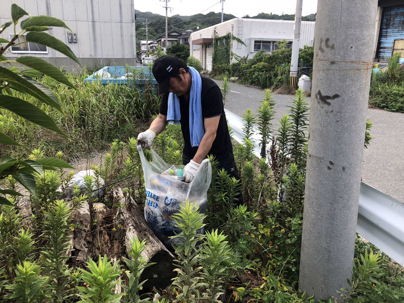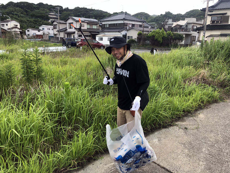 今回の清掃活動は、漁港関係者の皆さん、漁師の皆さん、遊漁船キャプテン、港のボートオーナーの皆さんとのコラボ企画として福岡市東区 弘漁港にて行いました。いつもと違い早朝からの開催でしたが、それでも猛烈な暑さとなり、皆さま滝汗だくだくで活動されていました。