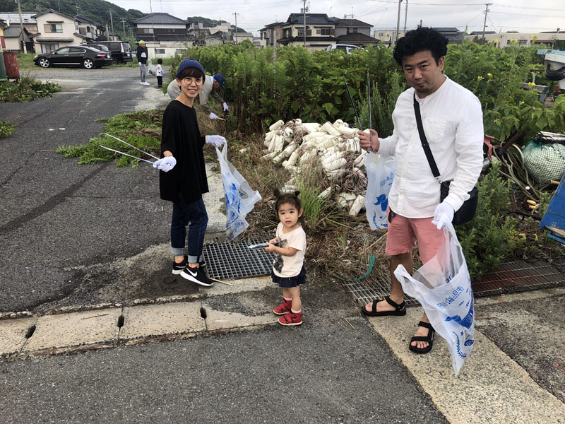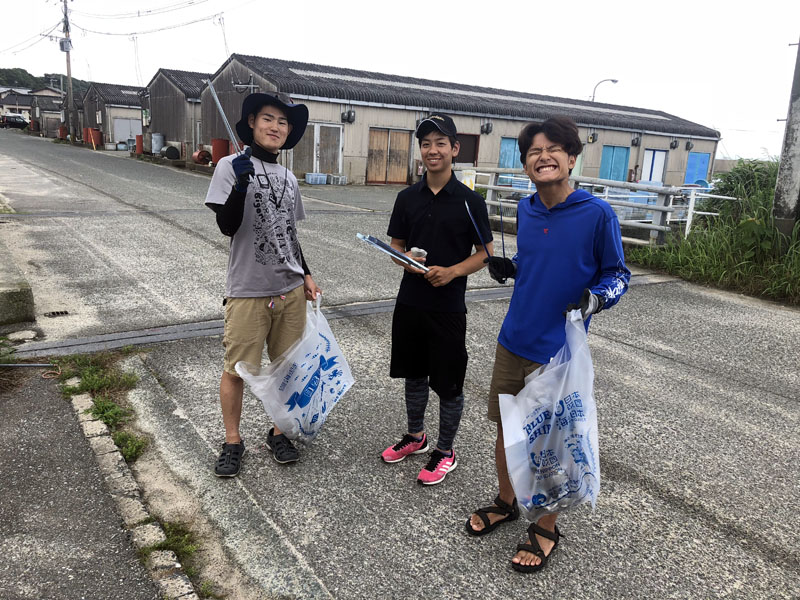 糸島の船越漁港で、残暑のなか汗をかきつつワイワイ拾いました。係留ロープに絡まった釣り糸・針が気になりましたね^_^;