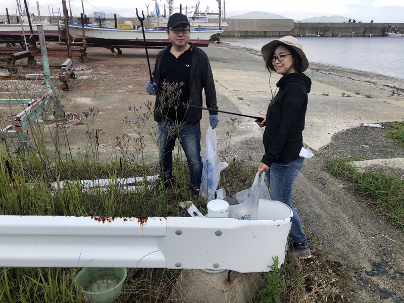 愛宕浜マリナタウにて行いました。5月とはいえ日差しはかなり厳しく参加者の皆さん汗をかきながらの活動だったと思います。